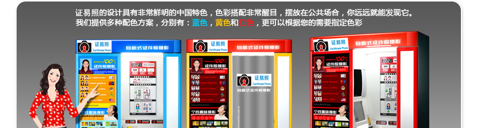 自助式摄影房上广告贴牌收入:证易照设备显目明快的外型让人远远就能看到,有人流的地方就应该有证易照设备,就应该有广告。近几年,类似中国的媒体广告商如聚众传媒已成为一闪亮的新星。自助摄影房的四周,将会是非常好的广告载体。 |